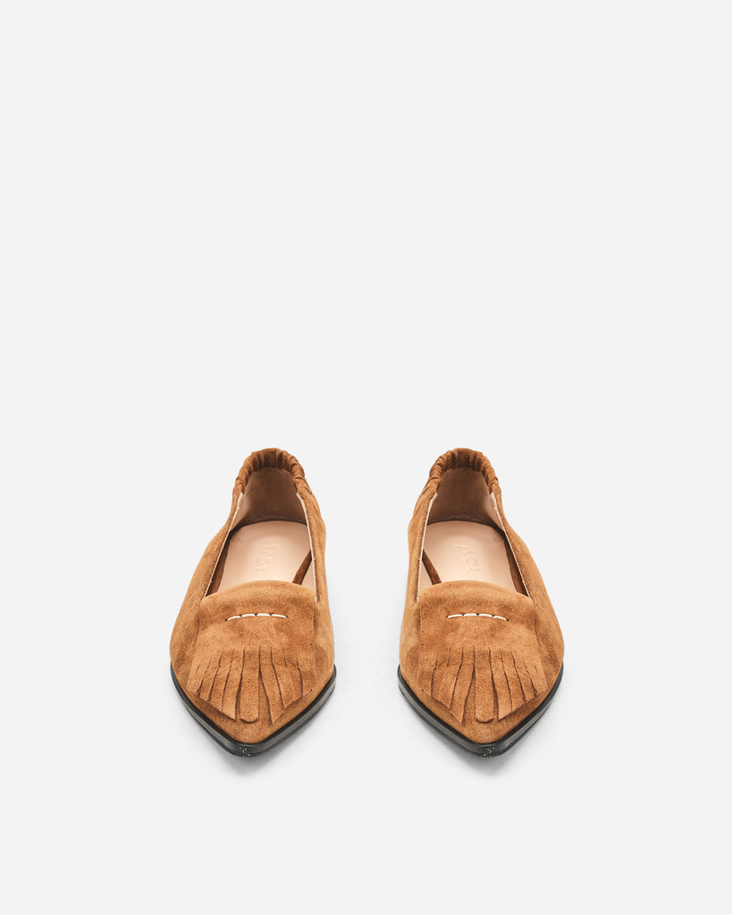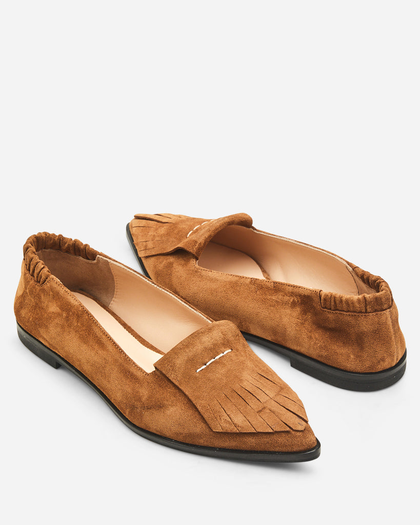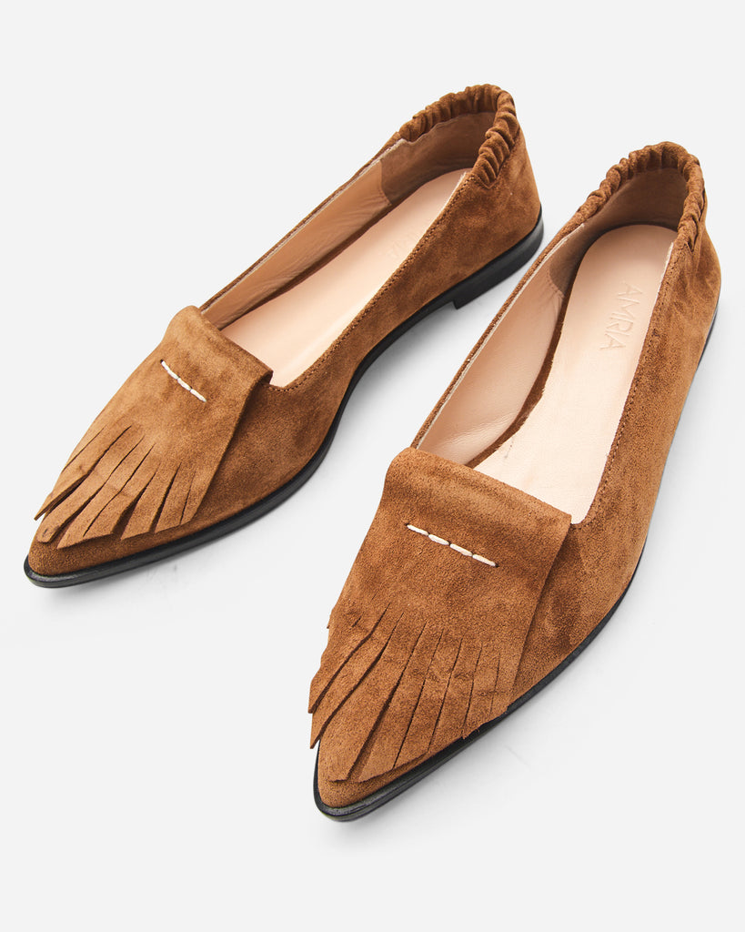 MOON הן הפרשנות שלנו למוקסינים הקלאסיים. מפתח מרובע עם תפר מחלב בשילוב עורות רכים במיוחד, רוקמים יחדיו נעליים נוחות להפליא להליכה מבוקר עד ערב. גומי בחלק האחורי מאפשר התאמה מדויק לכל כף רגל. אהבנו בשילוב של ג'ינס או מכנס מחויט ויעבדו נהדר עם חצאית בכל אורך.