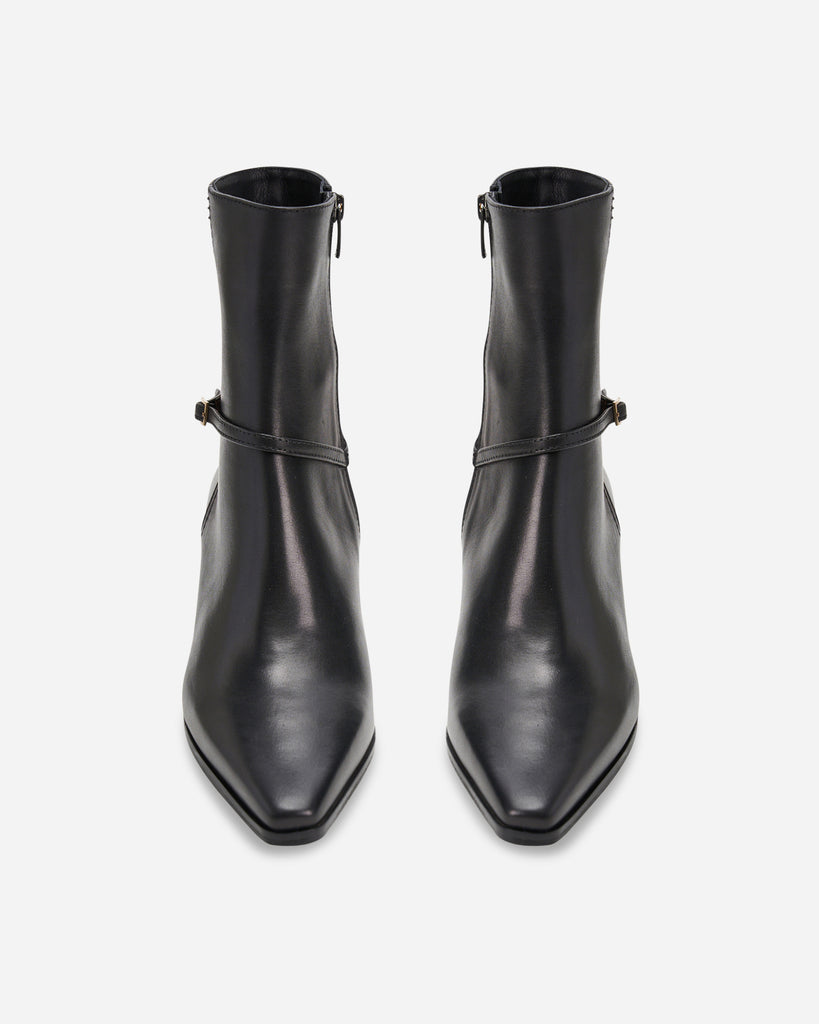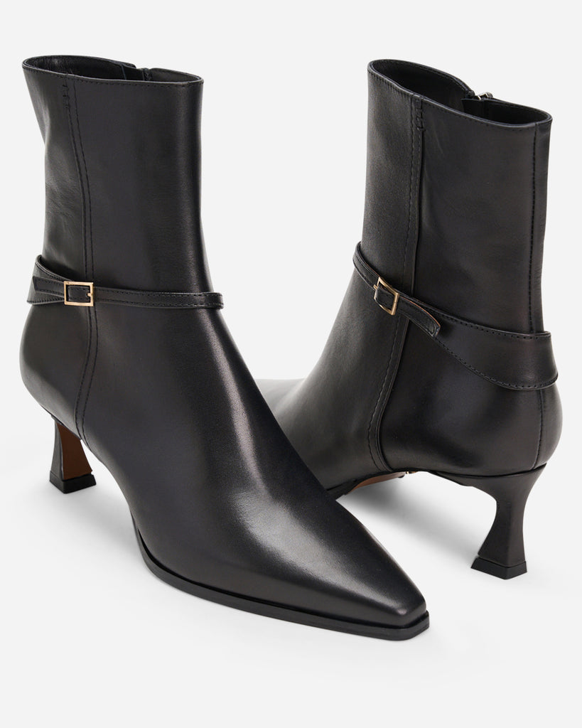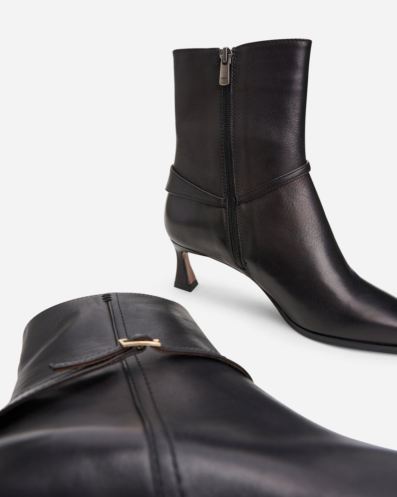 המגפיים החדשים שלנו, משלבים רצועה עדינה סביב הקרסול, למראה אלגנטי ונשי. עשויים מעור איטלקי רך עם בטנה מעור כבשים. גובה העקב 55 מ"מ, עטוף גם הוא בעור. אנחנו התאמנו חצאית אבל אין ספק שגם מכנסיים ישתלבו נפלא.