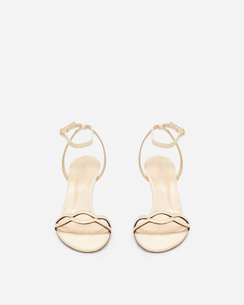 סנדלי סקרלט, משובצות ברצועות גלים, בחלקם הקדמי על מפתח עגול. הרצועה האחורית גמישה ומעניקה יציבות לקרסול.