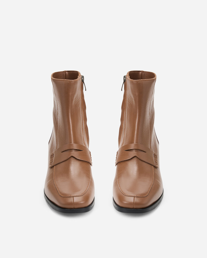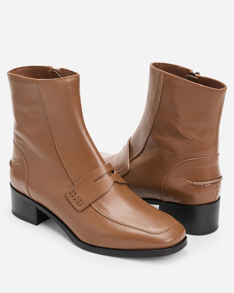 מגפי המוקסינים החדשים שלנו משלבות בין מוקסינים קלאסיים למגפיים. מונחות על עקב בגובה 3 ס"מ מיוצרות מעור איטלקי רך, בגזרה קלאסית. יתאימו לג'ינס, מכנס מחויט ואפילו שמלה.