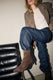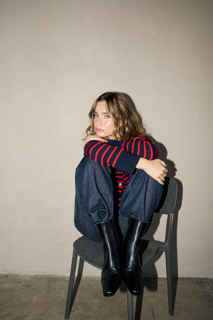 המגפיים החדשים שלנו, עשויים מעור איטלקי רך עם בטנה מעור כבשים. קו המתאר העוטף את המגף בחלקו התחתון, עובר דרך חוטם מרובע עדין, מחבר את חלקי המגפיים, ומעניק סטייל ייחודי. גובה העקב 55 מ"מ, עטוף גם הוא בעור, ובחלק הפנימי רוכסן מותאם המאפשר שימוש קל וזורם. אנחנו התאמנו חצאית אבל אין ספק שגם מכנסיים ישתלבו נפלא.