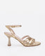 סנדלי מיס, משובצות ברצועות מוצלבות כפולות, בחלקם הקדמי על מפתח עגול. הרצועה האחורית גמישה ומעניקה יציבות לקרסול. מבנה קל ונוח, עקב יציב בגובה 7 ס"מ, מאפשר הליכה נוחה. הסנדלים עשויות עור רך במיוחד, עם תשומת לב לפרטים הקטנים. מושלמות ללוק יומי מופקד, או לערב מתוחכם.