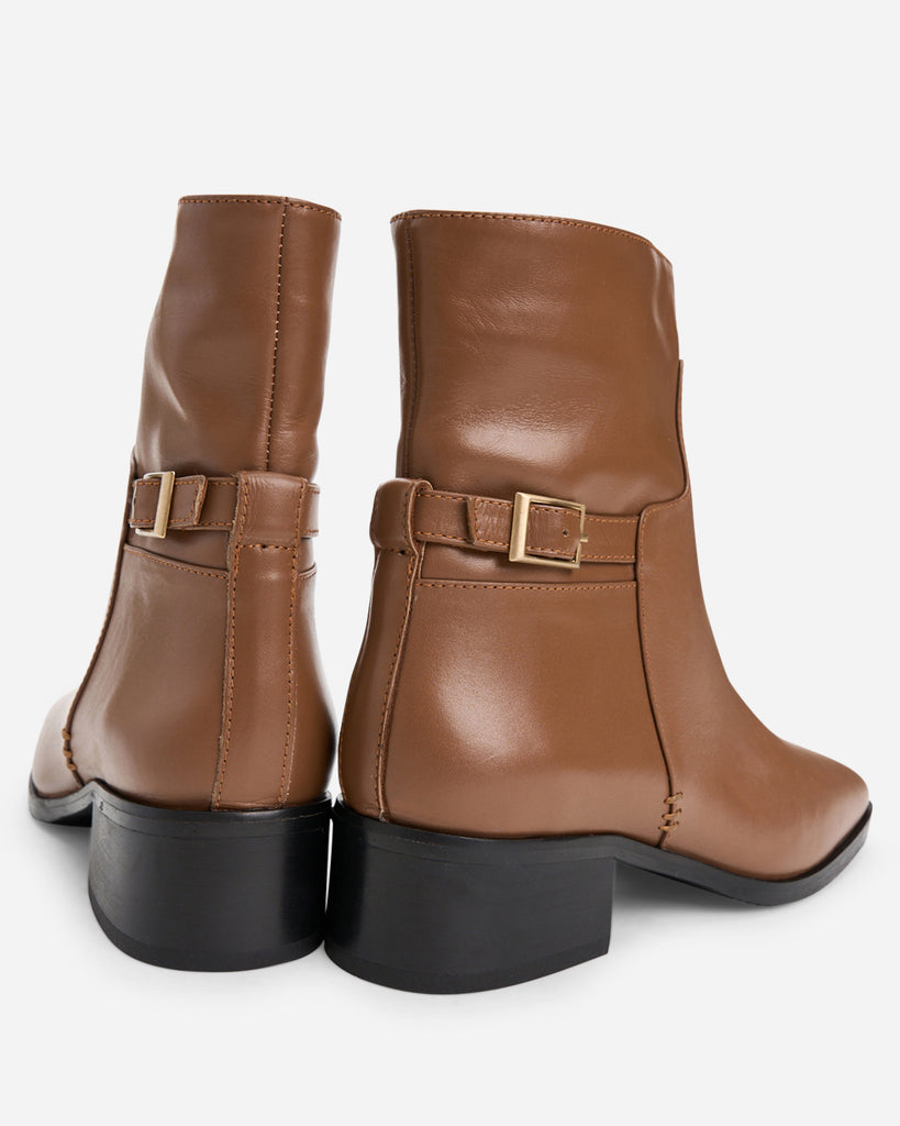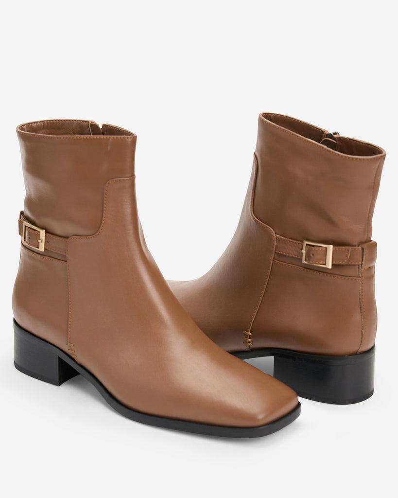 מגפיים קלאסיות עם חוטם מרובע, בשילוב אבזם אחורי. מונחות על עקב בגובה 4 ס"מ מיוצרות מעור איטלקי רך, בגזרה קלאסית. יתאימו לג'ינס, מכנס מחויט ואפילו שמלה.